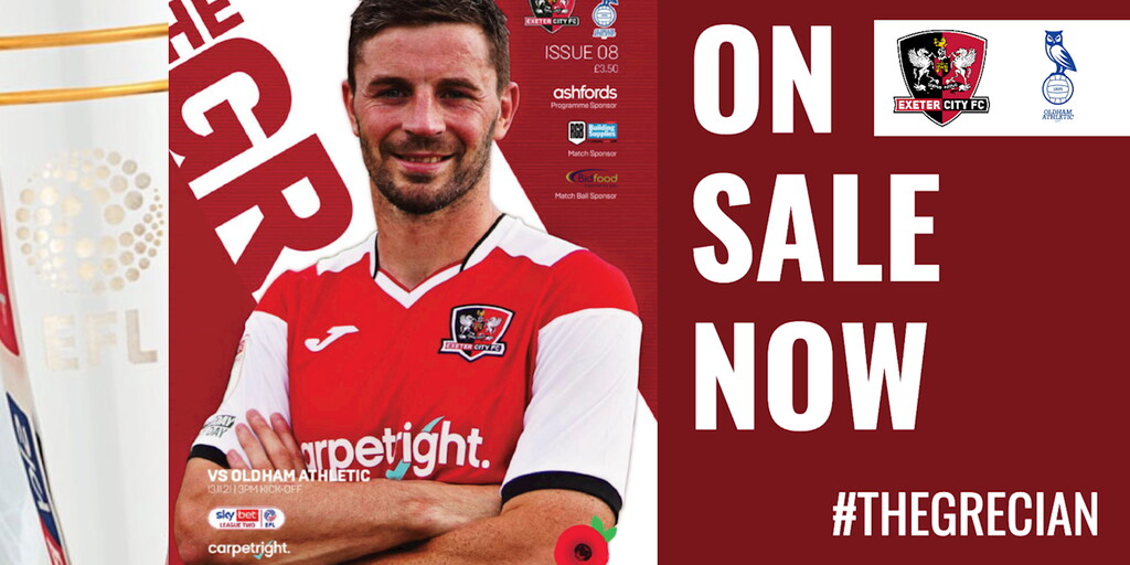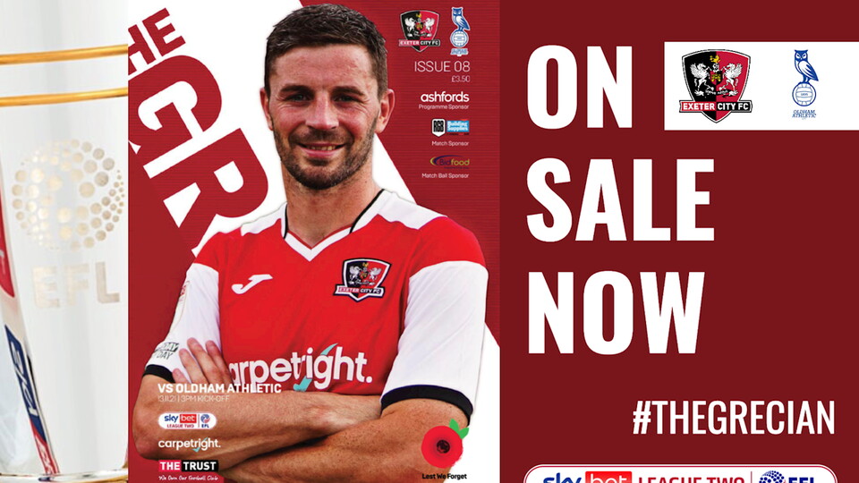 Exeter City's award-winning programme The Grecian is now on sale ahead of this weekend's clash with Oldham Athletic.