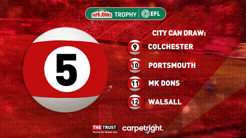 Exeter City will be ball number 5 in the draw for the second round of the Papa John's Trophy, which takes place on Saturday afternoon.