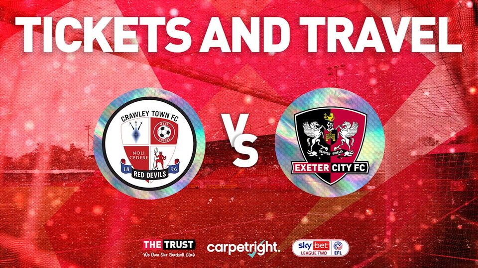 Tickets for our trip to Crawley Town on Tuesday, October19 are now available to purchase from your online account and via the club shop.