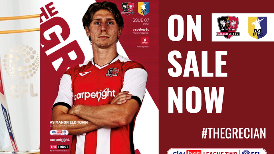 Exeter City's award winning programme The Grecian is now on sale ahead of the Mansfield Town fixture on Saturday.