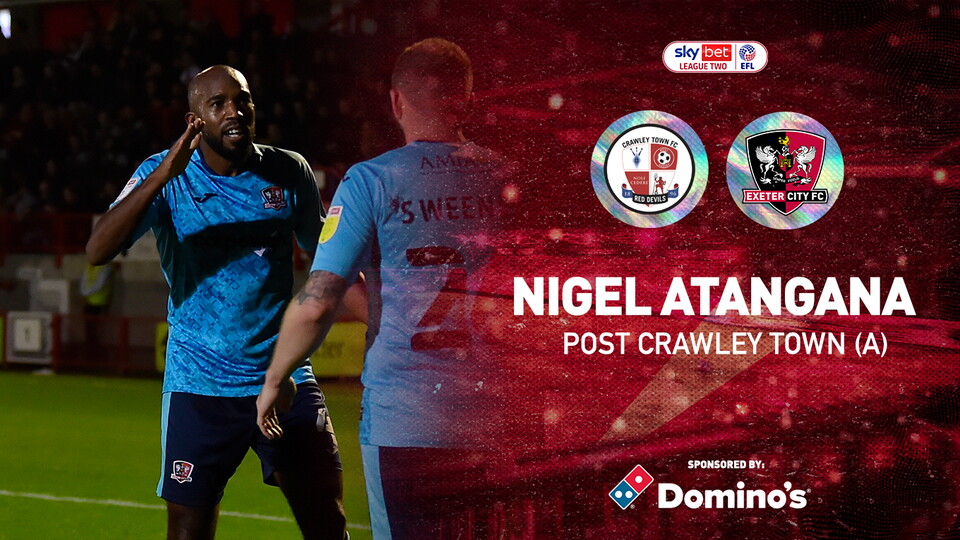 Nigel Atangana has expressed his joy in scoring in Exeter City's 3-1 win over Crawley Town on Tuesday night.