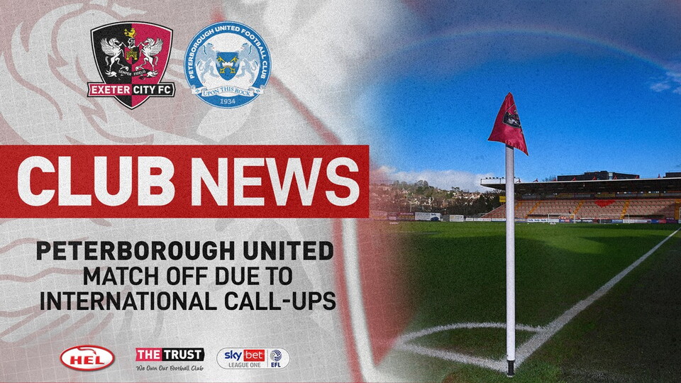 City's home match next Saturday, 18 November against Peterborough United has been postponed due to international call-ups in the visitors' squad.
