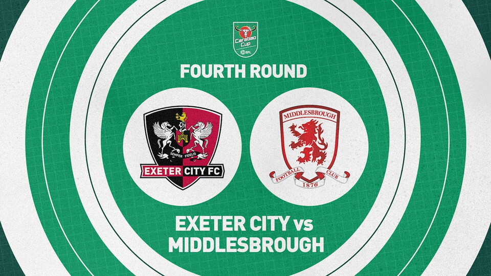 Exeter City will host Championship side Middlesbrough in the Carabao Cup fourth round.
