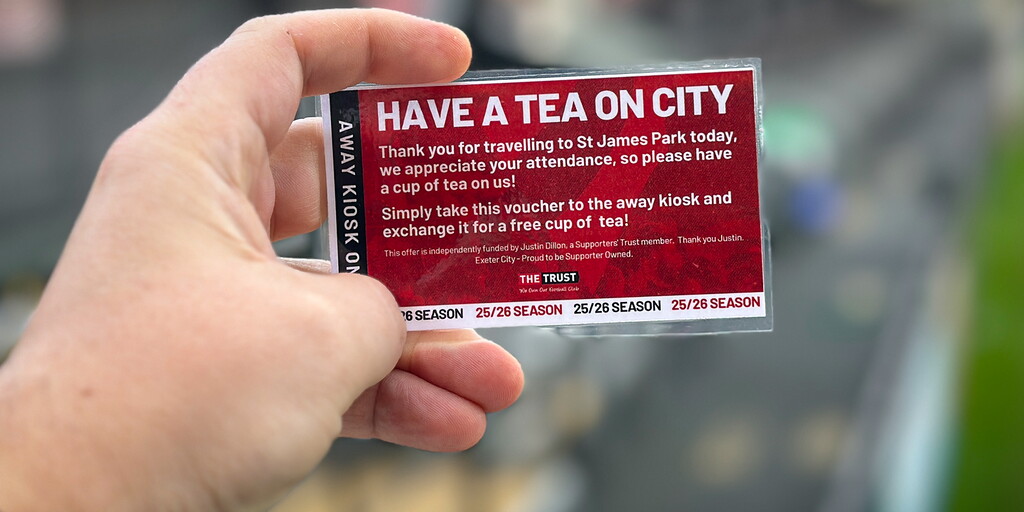 Exeter City has long been recognised for its friendly and inclusive atmosphere. The combined sponsorship by Justin and Ken only enhances that reputation. Consistent Family Excellence reports have praised the warm welcome extended to both home and away supporters, and it's not just the Thank You For Travelling hot drink that makes a difference.