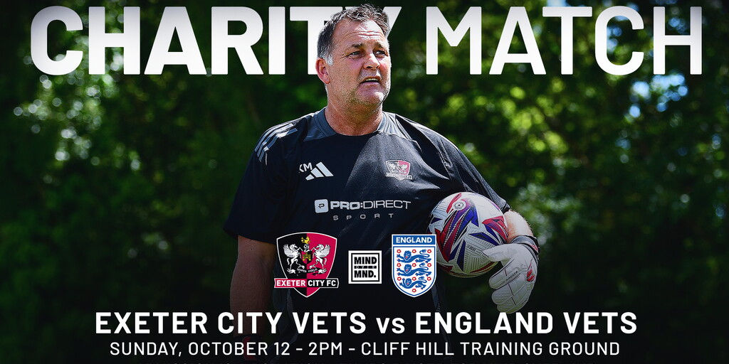 An Exeter City Vets team takes on England Vets in a charity match at the Cliff Hill Training Ground on Sunday at 2pm.