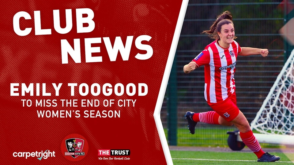 ๐ Emily Toogood to miss end of City Women's season Club News ๐ Emily Toogood to miss end of City Women's season 12th April 2023