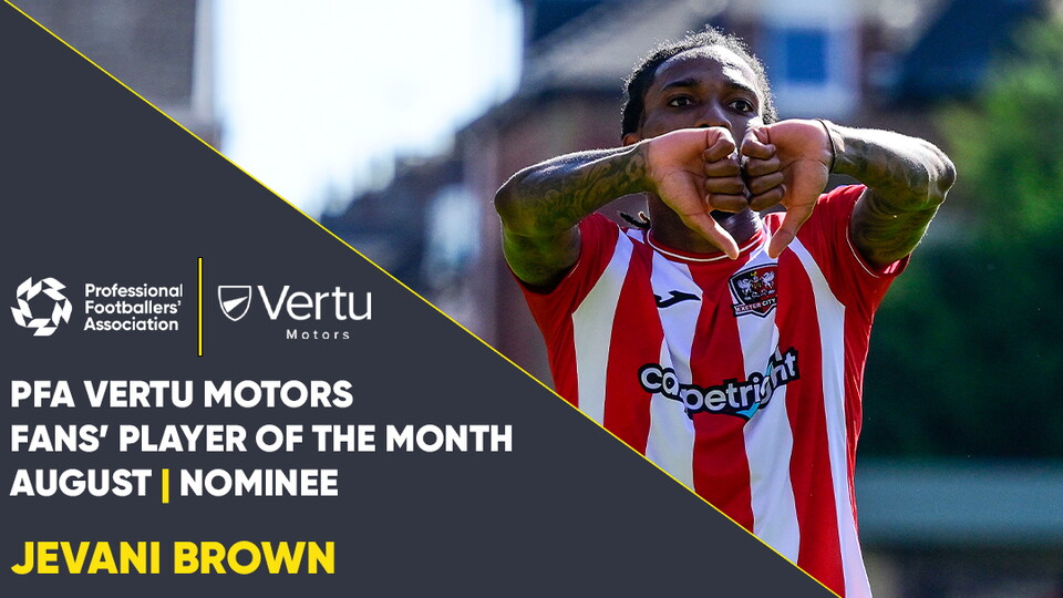 🏆 Jevani Brown nominated for PFA Fans' Player of the Month Club News 🏆 Jevani Brown nominated for PFA Fans' Player of the Month 7th September 2022