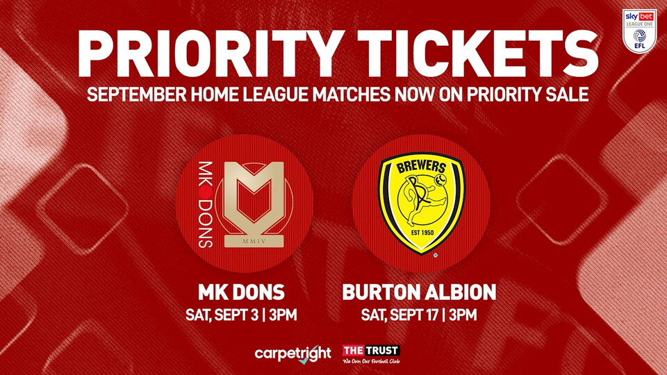 🎟 September home league matches now on priority sale Ticket News 🎟 September home league matches now on priority sale 1st August 2022