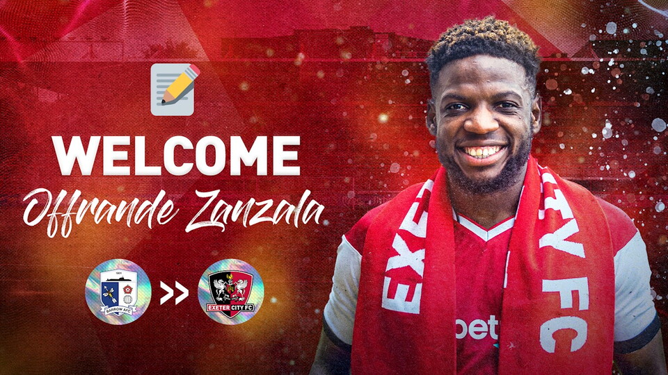 ✍️ Offrande Zanzala joins Exeter City on loan Club News ✍️ Offrande Zanzala joins Exeter City on loan 10th January 2022