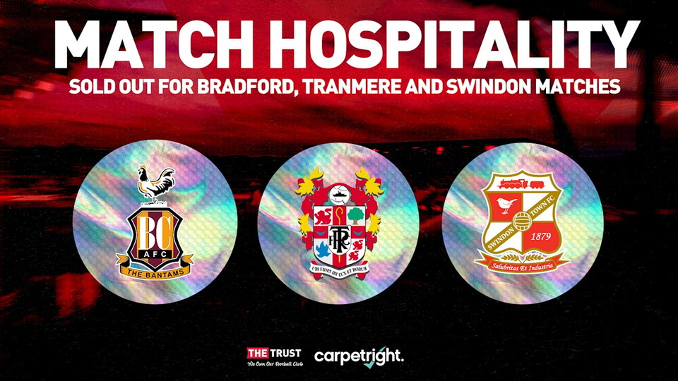 📝 Hospitality sold out for Bradford, Tranmere and Swindon matches Commercial 📝 Hospitality sold out for Bradford, Tranmere and Swindon matches 29th November 2021
