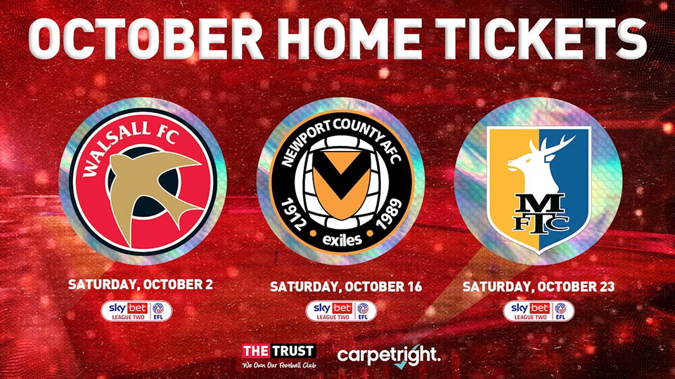 🎟 October home matches now on priority sale Club News 🎟 October home matches now on priority sale 1st September 2021