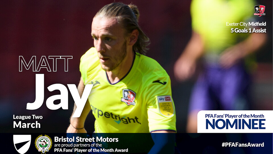 🏆 Matt Jay up for PFA Fan's Player of the Month for March Club News 🏆 Matt Jay up for PFA Fan's Player of the Month for March 13th April 2021