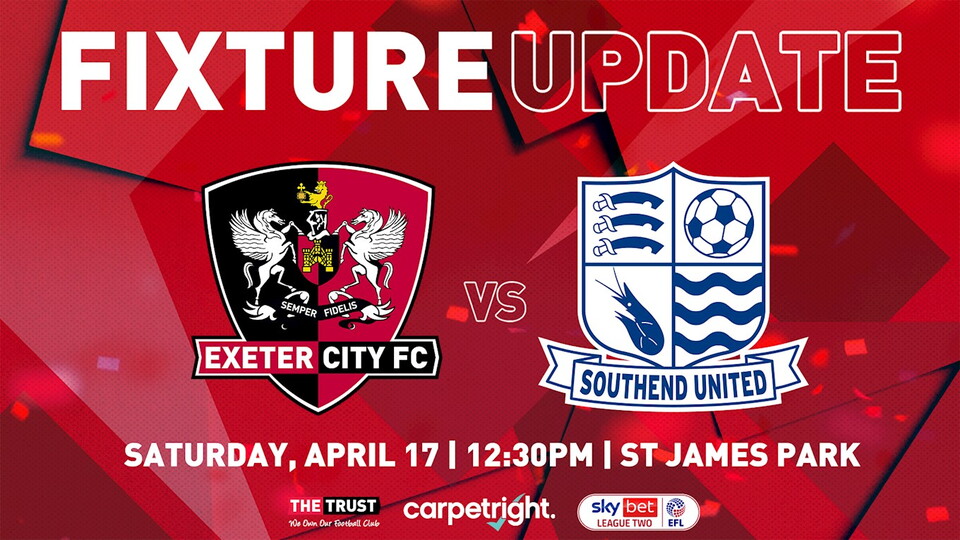 🗓 FIXTURE UPDATE: Southend United match now a 12:30pm kick-off on Saturday Fixture News 🗓 FIXTURE UPDATE: Southend United match now a 12:30pm kick-off on Saturday 12th April 2021