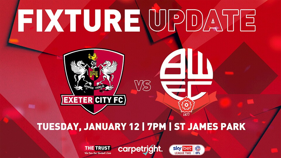 🗓 Bolton Wanderers match now a 7pm kick-off Fixture News 🗓 Bolton Wanderers match now a 7pm kick-off 4th January 2021