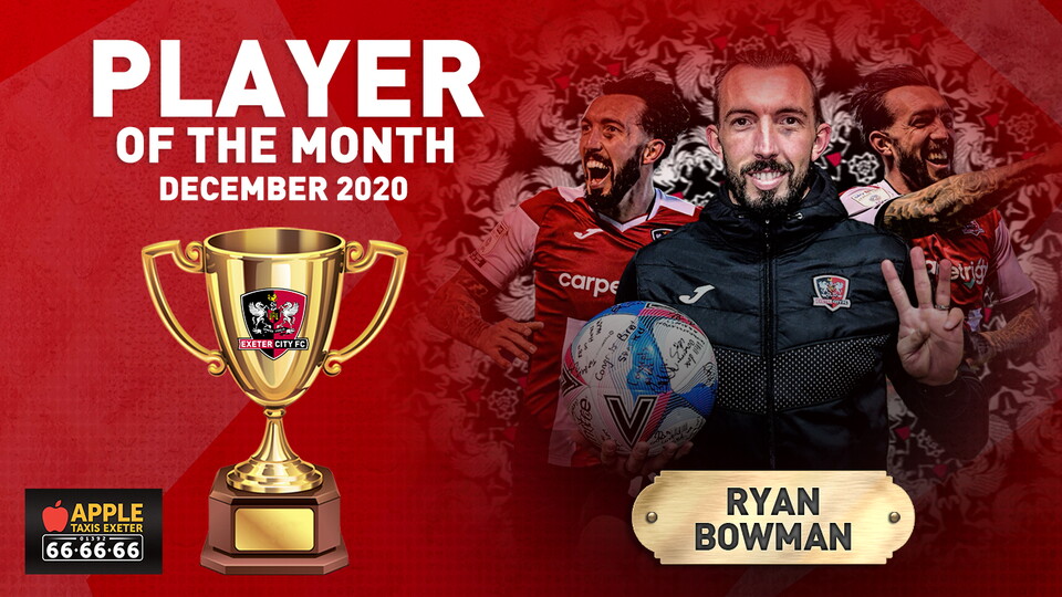 🏆 Ryan Bowman voted YOUR Apple Taxis Exeter Player of the Month for December Commercial 🏆 Ryan Bowman voted YOUR Apple Taxis Exeter Player of the Month for December 6th January 2021