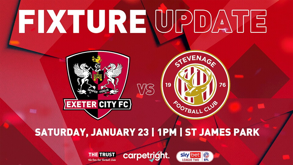 🗓 FIXTURE UPDATE: Stevenage match on Jan 23 now a 1pm kick-off Fixture News 🗓 FIXTURE UPDATE: Stevenage match on Jan 23 now a 1pm kick-off 7th January 2021